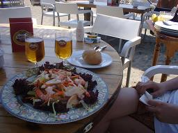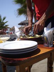 上の写真の公園を歩いて海まででたところにあった浜辺のレストランでパエリアを注文。
