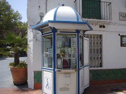 宝くじ屋さん。おじさん笑ってくれてるのに良く見えない。ごめんよー。おじさんー。