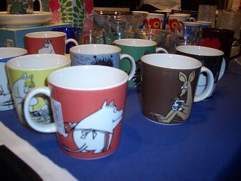 ムーミンのマグカップは、こっちで買っても高い。各19ユーロ。