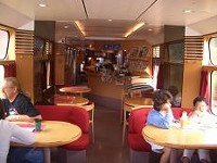 ↑早速車内へ。赤と木目が基調で、なんだかおしゃれ。