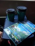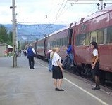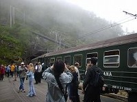 そうそう、ノルウェーでは(スウェーデンもだけど)、公共交通機関は全面禁煙。喫煙所もないのです。なので、お客さんはもちろん、車掌さんや売店の人まで、短い停車期間にいそいで喫煙。いやあ、しかし、売店でコーヒーは買えるし、水もあるし、禁煙以外はほんと幸せ。だけど、すごいガス?霧?うーん、太陽よ、出てきておくれええええ。