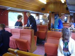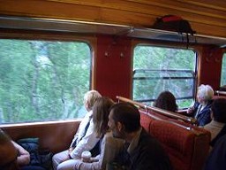右の写真は、発車後の景色に見入る観光客たち。