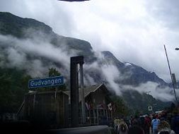↑ここが、フェリーで到着した Gudvangen 16:50 です。バスを待ちます。
