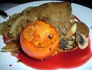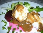 白身魚のペッパーソース(ほんとに、すごい胡椒だった)と、鯨肉のソテー。満腹、満腹。