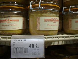 3ユーロくらいって値札がついてる棚に、フォアグラの瓶詰めが置いてあったので、