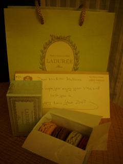 「良いお年を!」と書かれたカードとマカロンが置いてありました。