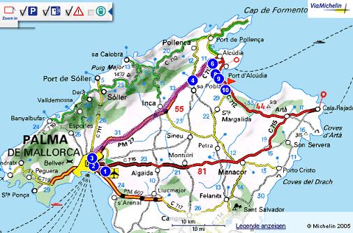 空港(1) からマヨルカでの宿泊地 Can Picafort(10) へ走ります。