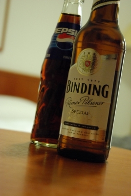 もう、フランクフルトからハンブルクへの飛行機はないそうなので、フランクフルト一泊です。ひさしぶりのドイツビールだねえ~。くーっ。